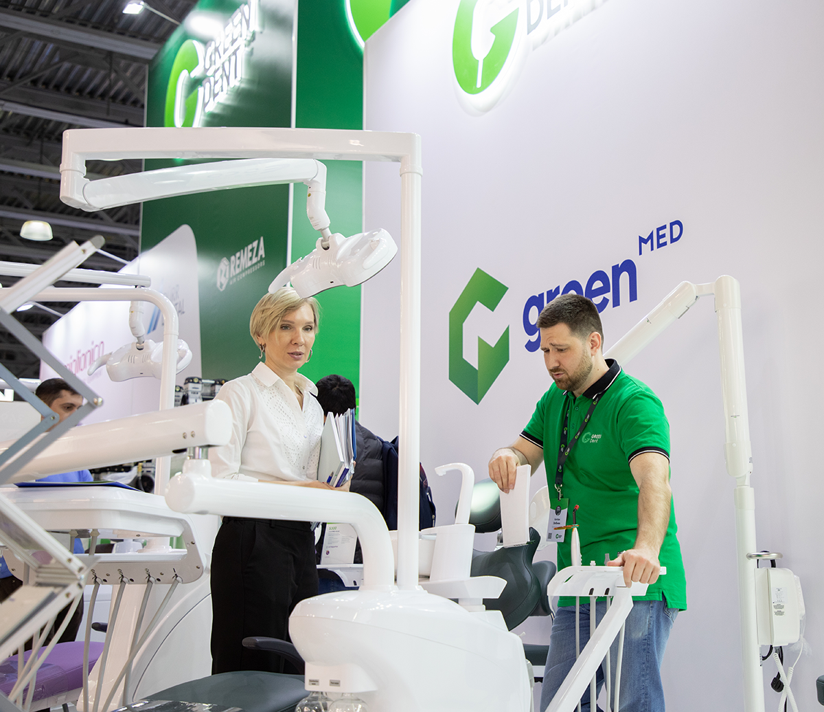 Большой выбор стоматологических установок GreenMED, новинки от Miglionico и полюбившиеся многим модели установок SILVERFOX: от такого многообразия выбора могла закружиться голова, но к счастью, рядом находились наши опытные менеджеры.